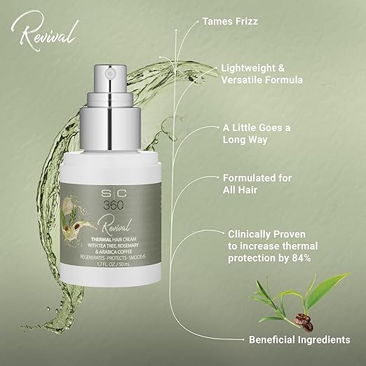 The S|C360 Revival Thermal Hair Cream is a lightweight, professional-grade styling solution that boosts softness, shine, and manageability for all hair types, while offering protection against heat and environmental stressors.
